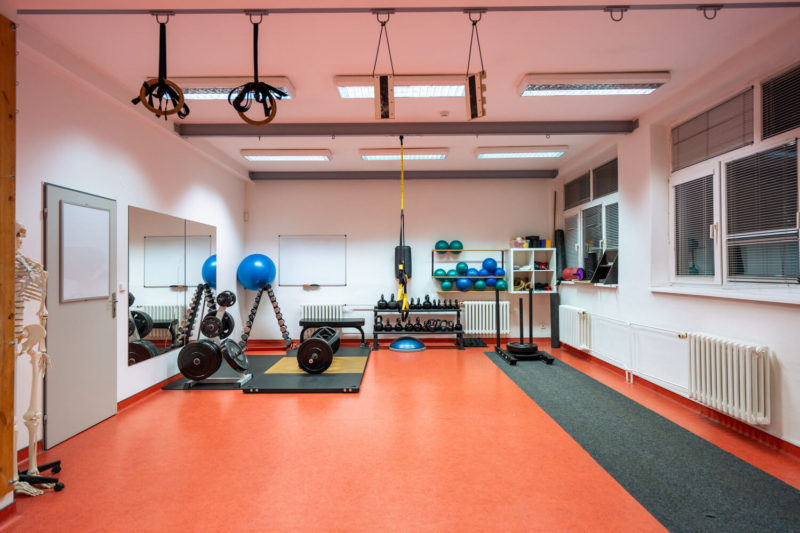 • TRX,  stupínky, lavice, odporové gumy a spoustu dalšího vybavení