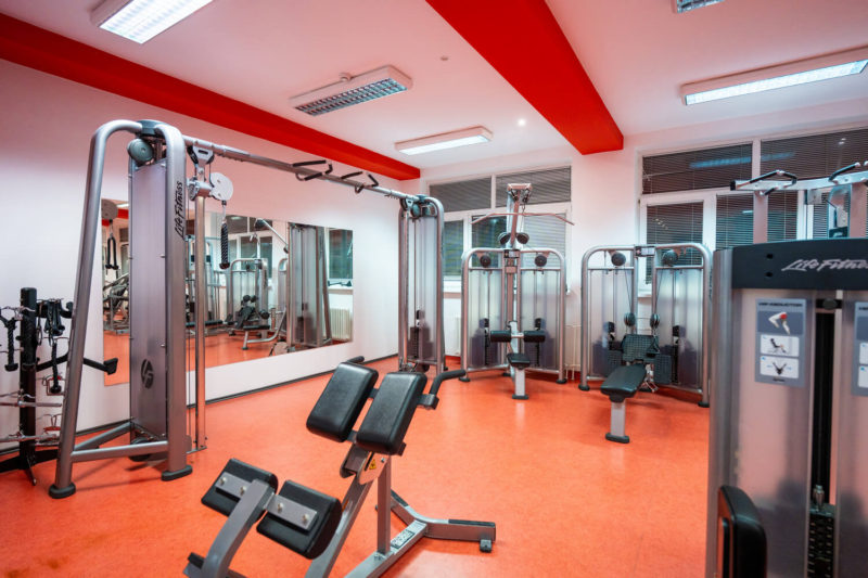Jsme vybavené fitness centrum se všemi potřebnými stroji pro cvičení všech svalových partií